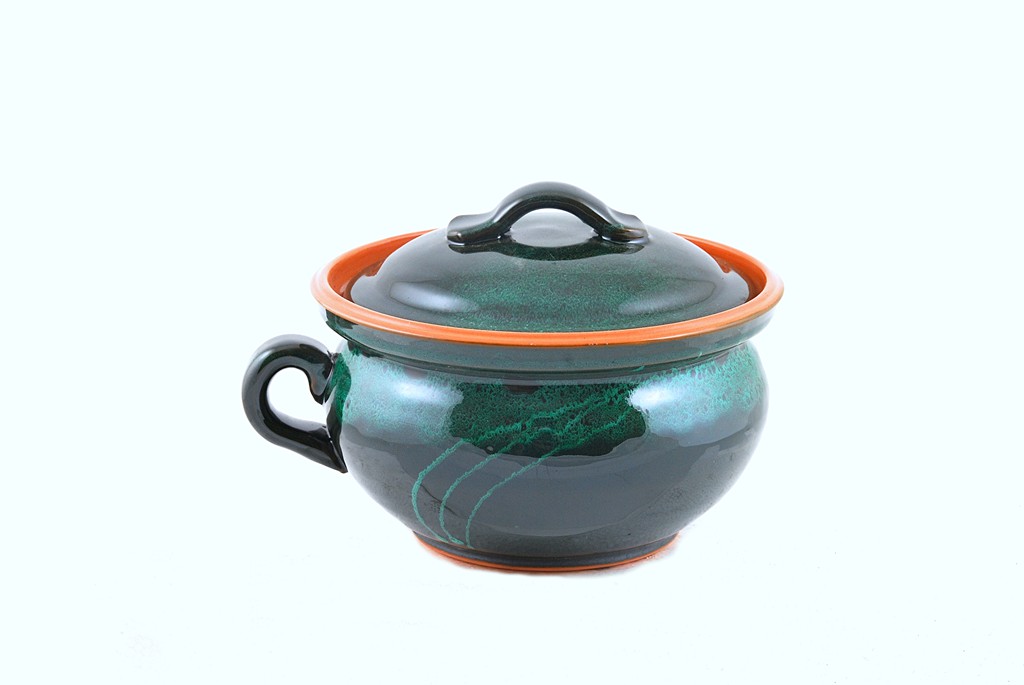 Garnek dwuuszny z pokrywką i podstawką do ogórków małosolnych